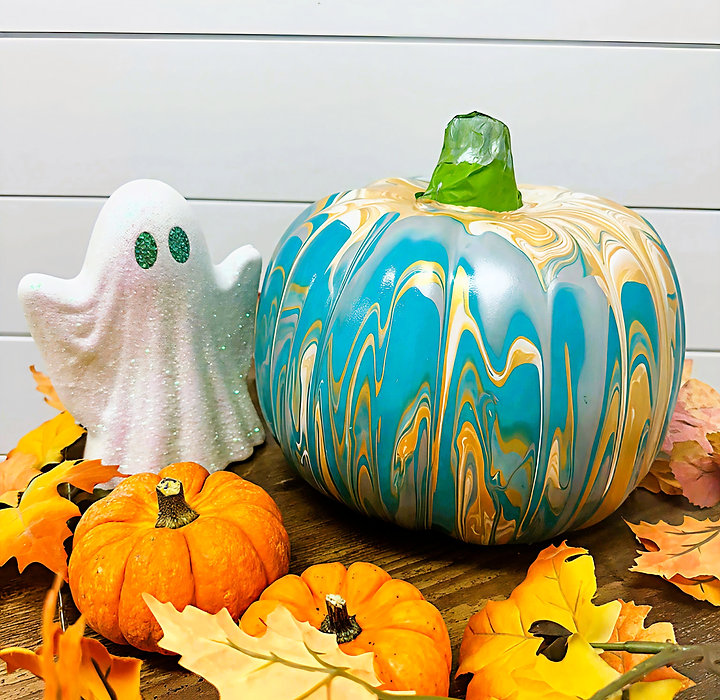 Give your pumpkin a colorful twist! In this workshop, you'll use the magic of paint pouring to create a one-of-a-kind pumpkin with flowing, marbled patterns. No two are ever alike - and that's the fun! A perfect way to add a modern, artistic touch to your fall decor!